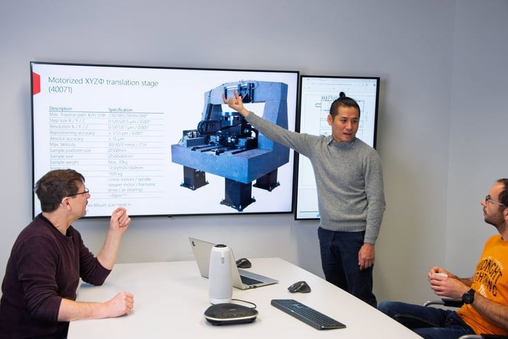 Dr. Hayato Omori, Head of custom stages at Nanosurf, in a meeting with his team. Image Credit: Nanosurf AG